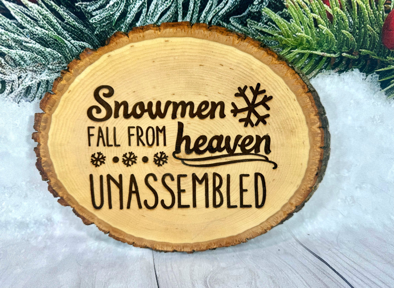 Snowmen Fall From Heaven Unassembled Live Edge Wood Sign